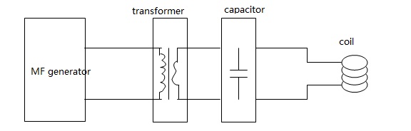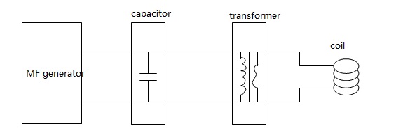 This structure is also used often, such as melting in vacuum, medium frequency induction quenching and so on.   Through the design of transformer ratio,  output current and voltage can be controlled to satisfy different heating desire.