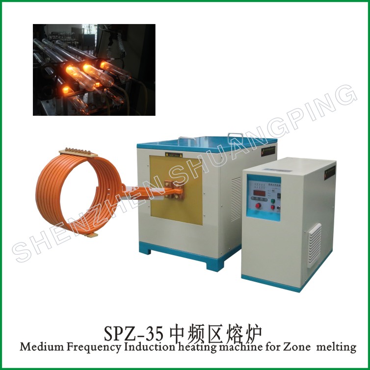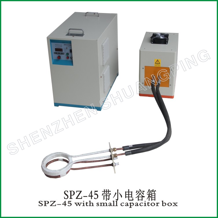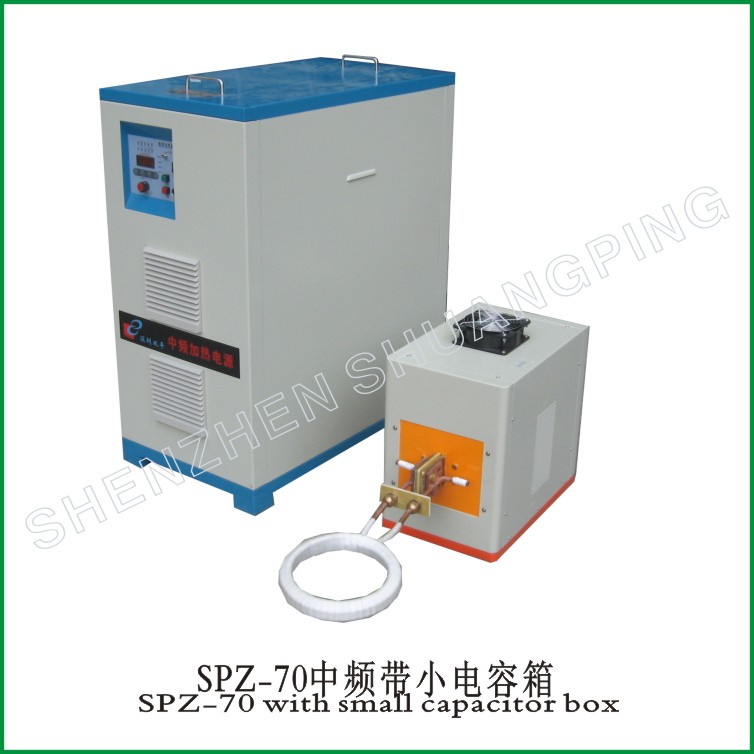 In SPZ medium frequency machines,parallel oscillating structure is used . IGBT module power components and our fourth generation inverting control technologies are applied to ensure high quality and reliability. Fully protection is adopted such as over current protection, water fail protection, over temperature protection, over voltage protection, short circuit protection and phase fail protection.  When working, output current, output voltage , oscillating frequency and output power are all displayed on the operating panel to help in the design of the coil and adjust of the machine.