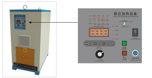 Since most of MF induction heating is long time or continuous working, normal front panel is installed on the machine, as indicated below pictures. With only start and stop button, and power adjust knob, it is easy to operate.