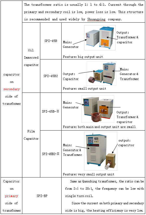 Generally to say, We do not have whole set of SPZ-B machines in stock, we have stock of only SPZ generator, whereas the capacitor and MF transformer will be designed and manufactured as per the work pieces and heating requirement of customers.