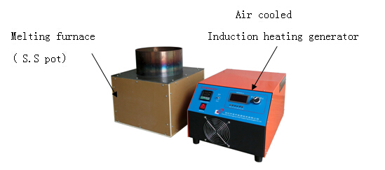 Using air cooled induction heating generator to melt low melting point metal or alloy such as Zinc, Tin, and Lead with stainless steel or steel melting pot. Refer to the picture below: