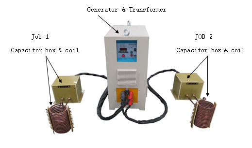 In above application, two job is distant 4 meters away and two jobs need to be heated at the same time with same step. Compared with the old heating plan of two coils in series with4mwater cooled cable, this project is energy saving and machine cost saving too.