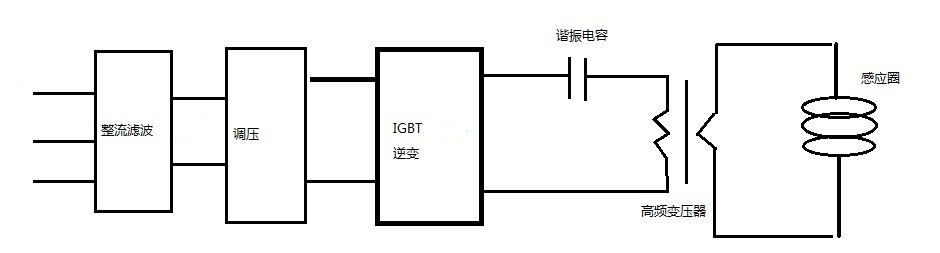 SP系列設(shè)備全部采用串聯(lián)諧振電路,諧振后通過高頻變壓器輸出低電壓、大電流的高頻電源;