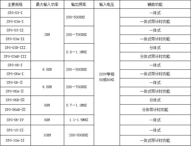 SPG-03、SPG-06和SPG-10系列設(shè)備結(jié)構(gòu)采用我公司第三代逆變控制技術(shù),采用MOSFET管作為功率器件,設(shè)備的輸出頻率高達(dá)1.1MHZ,適用于加熱一些細(xì)小零件,尤其在釬焊硬質(zhì)合金焊齒行業(yè)有廣泛的應(yīng)用。