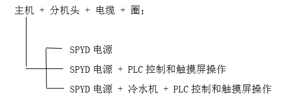 主機(jī)主要部分為SPYD電源,但也可以包含冷水機(jī); 控制面板可以是最簡(jiǎn)單的操作面板,也可以是PLC控制和觸摸屏操作面板, 我們目前主要提供上述三種主機(jī)形式。